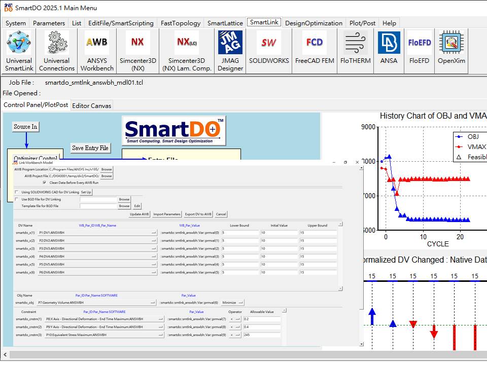 - Auotmatic design optimization by SmartDO optimizer