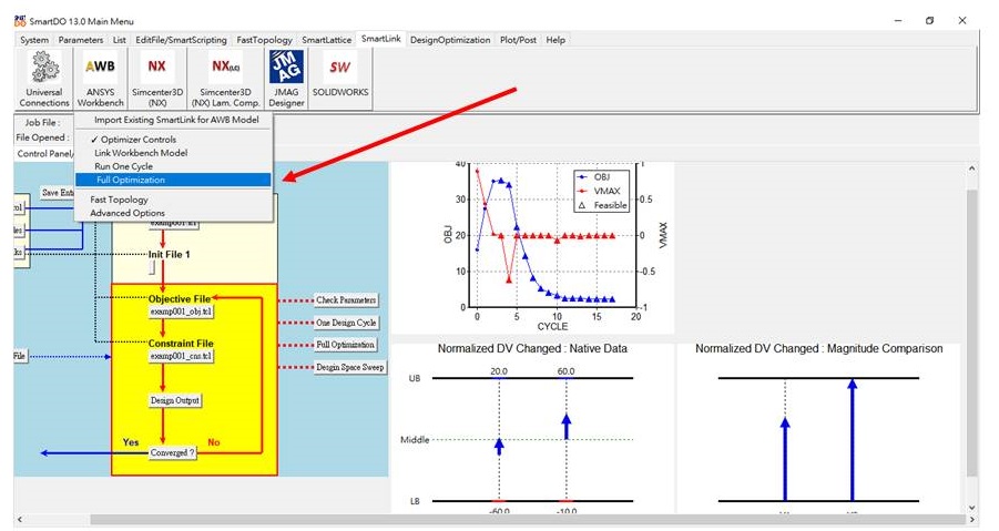 The Direct Global Search Technology in SmartDO eliminates manual data exploration and sensitivity study. When the setup and connection is done, automatic design optimization can be triggerred by one button. SmartDO will also graphically display important sensitivity information after the optimization is done.