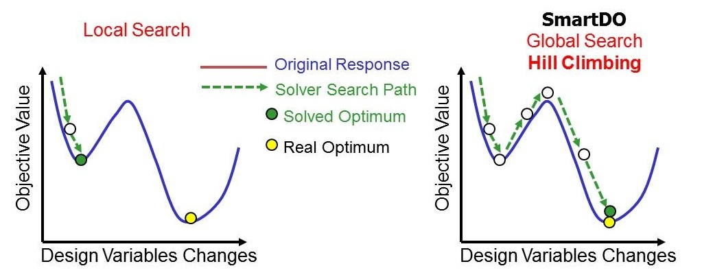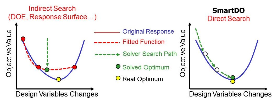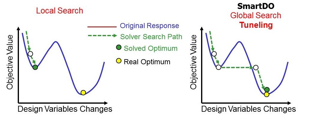 SmartDO focuses on the direct global optimization solver, which does not need much parametric study and tweaking on the solver parameter. Because of this, SmartDO has been frequently customized as the push-button expert system.